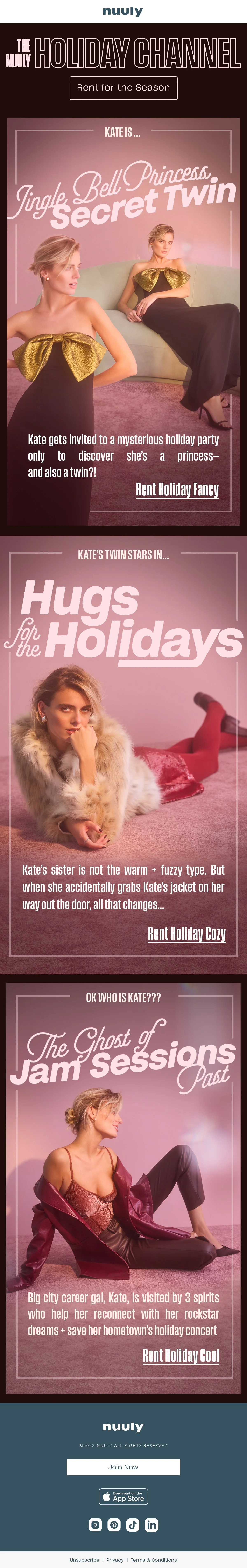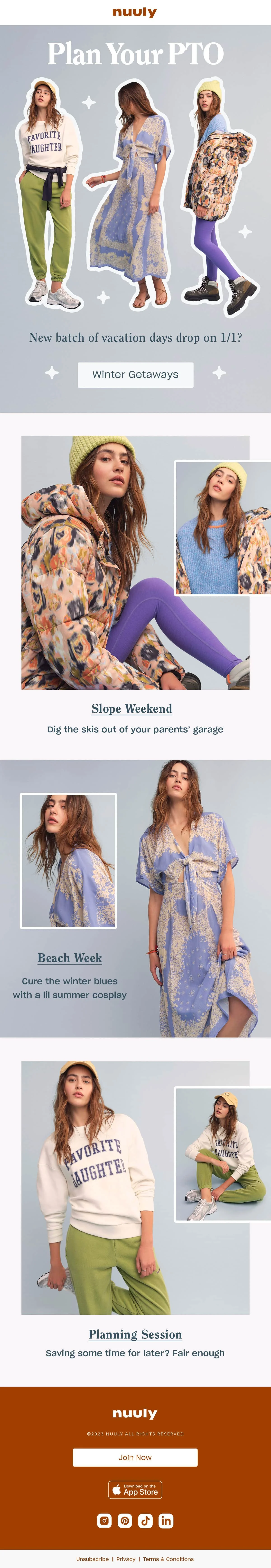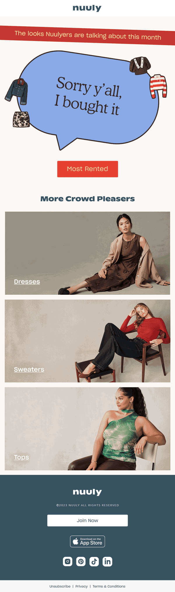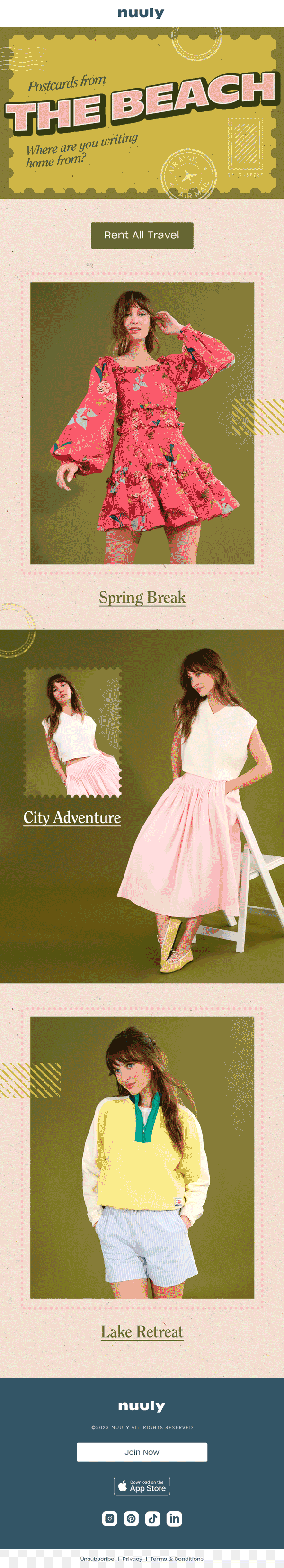 I currently work at Nuuly in Philadelphia PA as a member of the creative team. I contribute digital assets for use across multiple channels. Below are some of the projects I have made in collaboration with very talented copywriters.